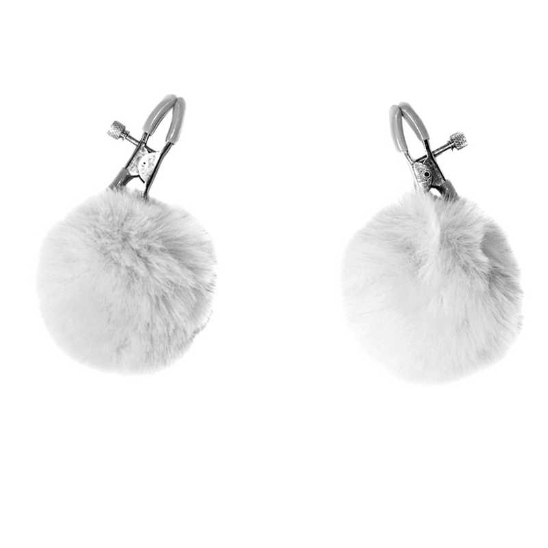 Zaciski na sutki Party Hard Angelic White mają niesamowity design, przemyślany w najmniejszym szczególe. Wysokiej jakości metalowe klipsy w komplecie z zalotnymi białymi zawieszkami z króliczego ogona. Zawieszki są doskonale wyprofilowane, a ochraniacze na powierzchniach styku z ciałem są dopasowane do dekoru futra. Zabawki są bardzo wygodne i praktyczne - dobrze trzymają sutki, a poza tym możesz dowolnie regulować intensywność ucisku. W tym celu dostępne są małe śruby, które obracając, można łatwo wyregulować zaciski, aby uzyskać wrażenie pożądanej ostrości. Rozmiar jest uniwersalny.