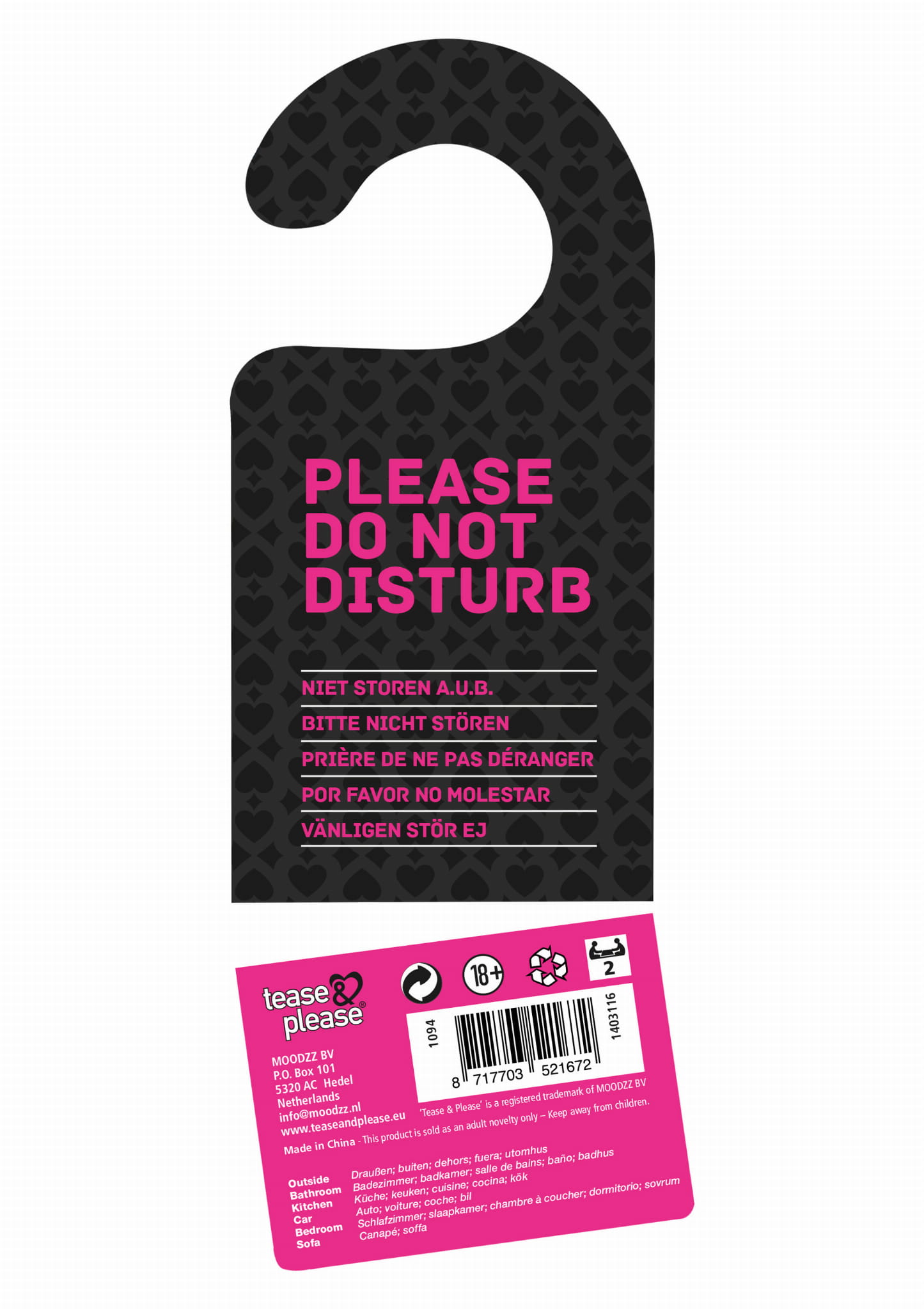 MOODZZ, maker of the internationally acclaimed erotic game Discover Your Lover, knows how to turn even a simple die into a deliciously erotic instrument: Love Dice! One die contains six stimulating Kama Sutra positions to bring a little playful variation into your love life. The other die suggests six thrilling locations in which to try it out because, truly, there?s a world of excitement waiting beyond the bed. Even the Love Dice package plays a role in your erotic adventure: empty, it becomes a door hanger that keeps potential peeping Toms from barging in on you.