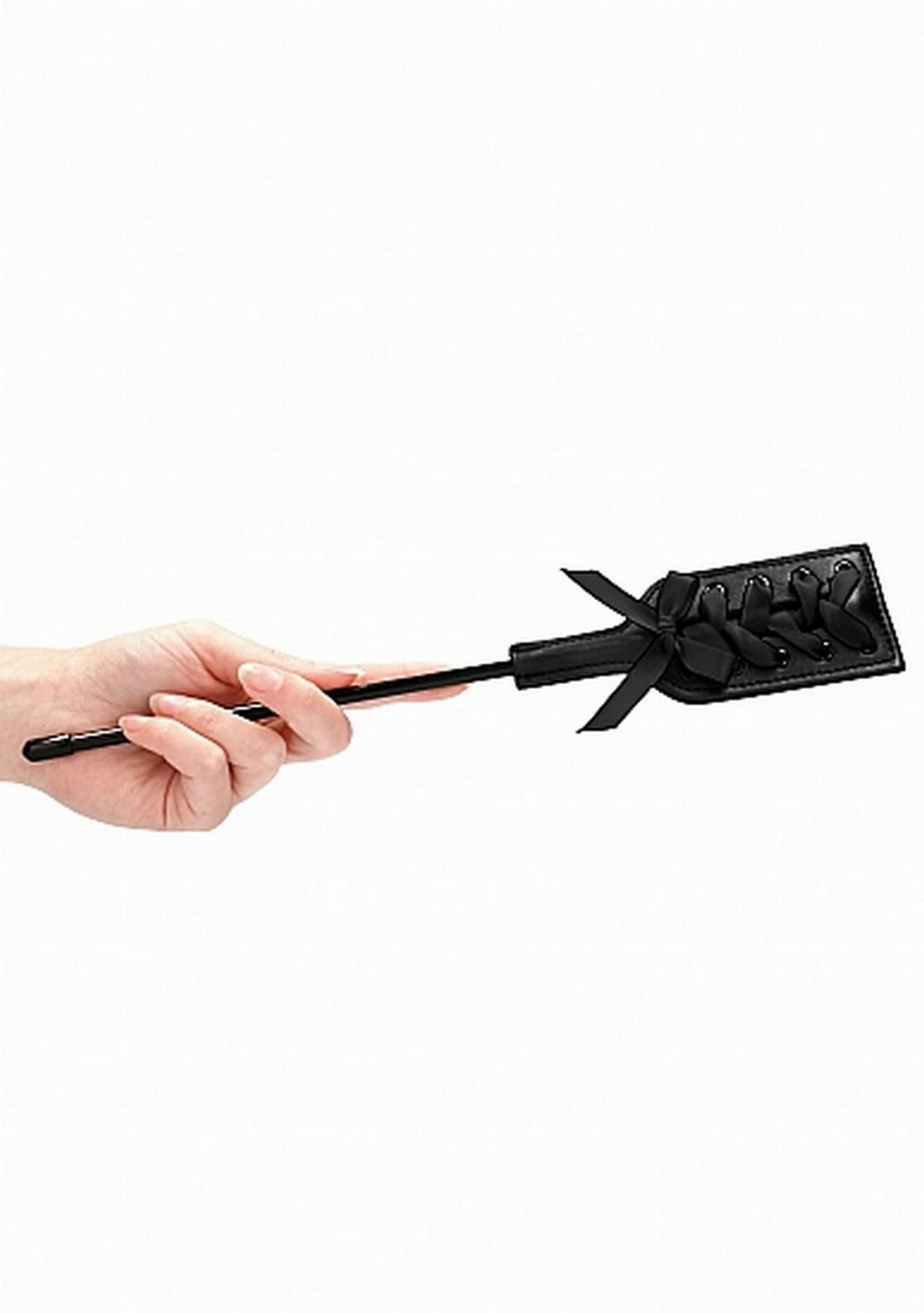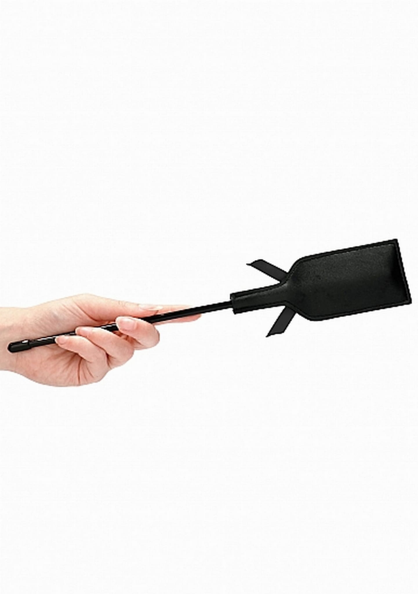 Ta krótka packa w kształcie prostokąta z czarną rączką i czarną kokardką to idealny sposób na zdyscyplinowanie partnera.