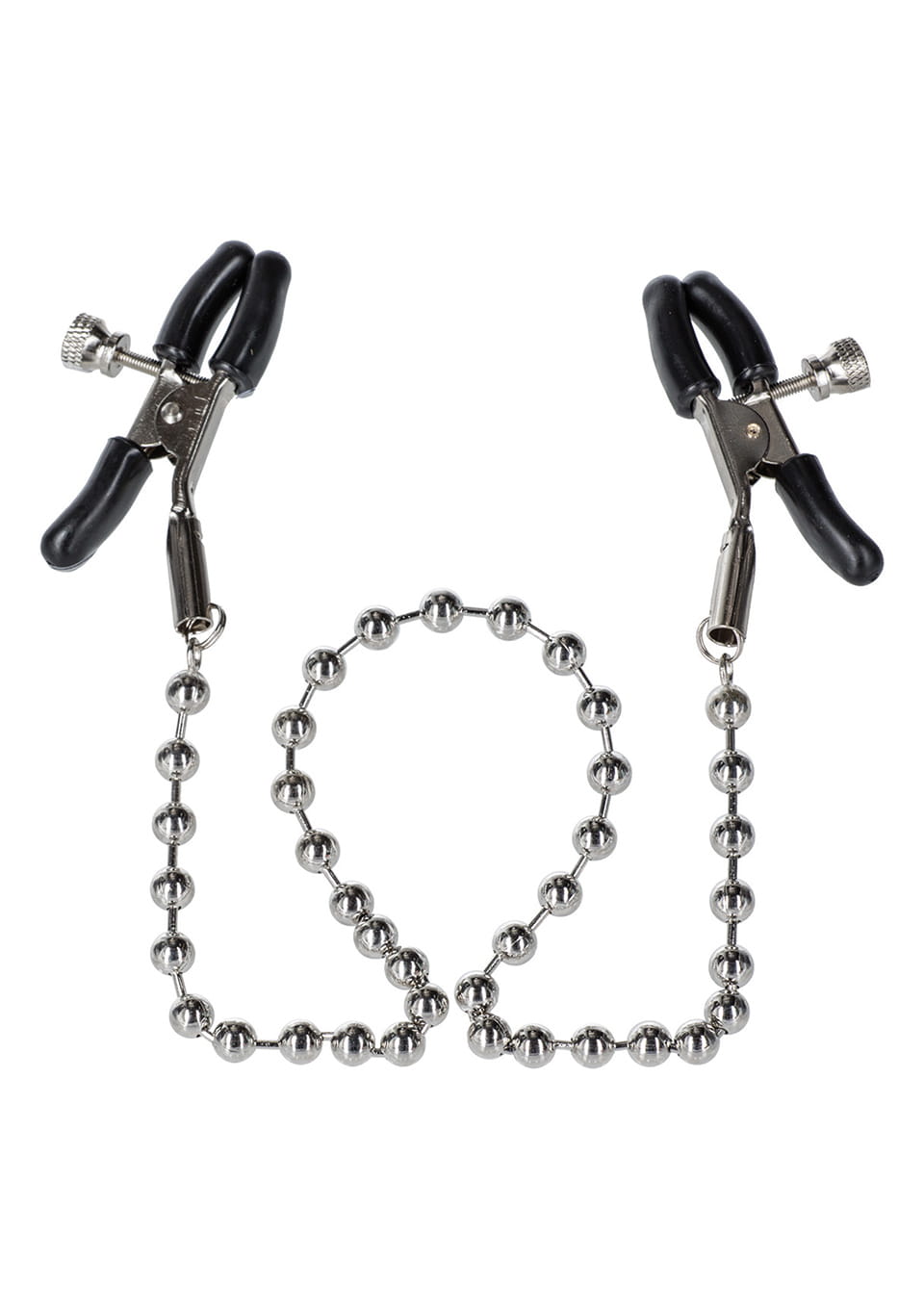 Wytrzymałe metalowe zaciski pokryte miękką gumą, te zaciski są idealne dla początkujących, jak i entuzjastów. Siłę zacisku brodawki można regulować obracając śrubę, Łańcuszek łącząy oba sutki, co daje niesamowitą stymulację przy każdym ruchu.