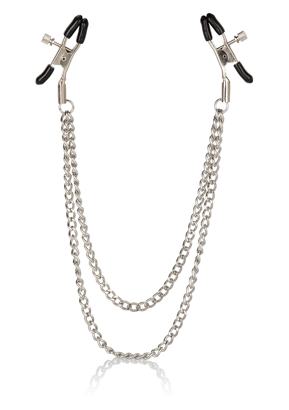 Wytrzymałe metalowe zaciski pokryte miękką gumą, te zaciski są idealne dla początkujących, jak i entuzjastów. Siłę zacisku brodawki można regulować obracając śrubę, Łańcuszek łącząy oba sutki, co daje niesamowitą stymulację przy każdym ruchu.