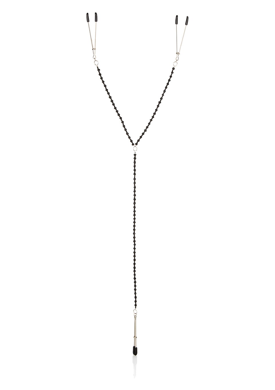 Unikalne połączone ze sobą klipsy na sutki i łechtaczkę z regulacją pierścienia napinającego.