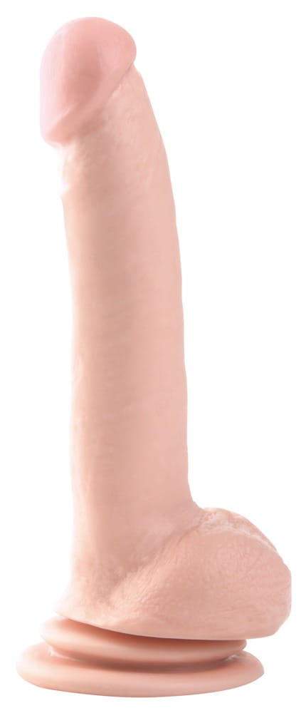 Realistic dildo with pronounced veins, glans and testicles. The suction cup sticks to most flat surfaces and guarantees a hands-free ride. It is also compatible with strap-ons.