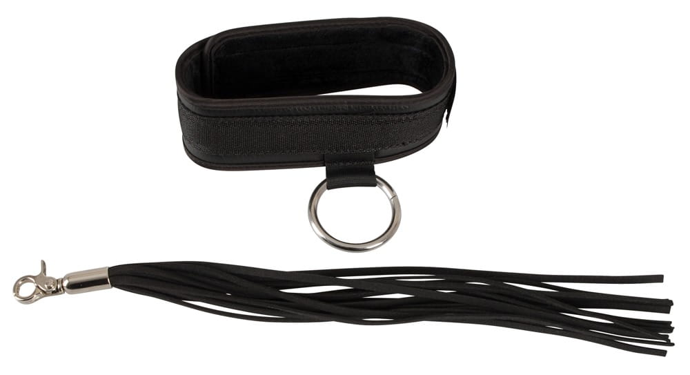 This mini flogger with a collar is a must-have for any SM lover. The most important instrument is always to hand, wether the wearer has masochistic or sadistic tendencies. The imitation leather feels very soft against the skin and gives this set a stylish look- The flogger has a snap hook can be attached to the O-ring on the collar. The collar has a hook and loop fastener.