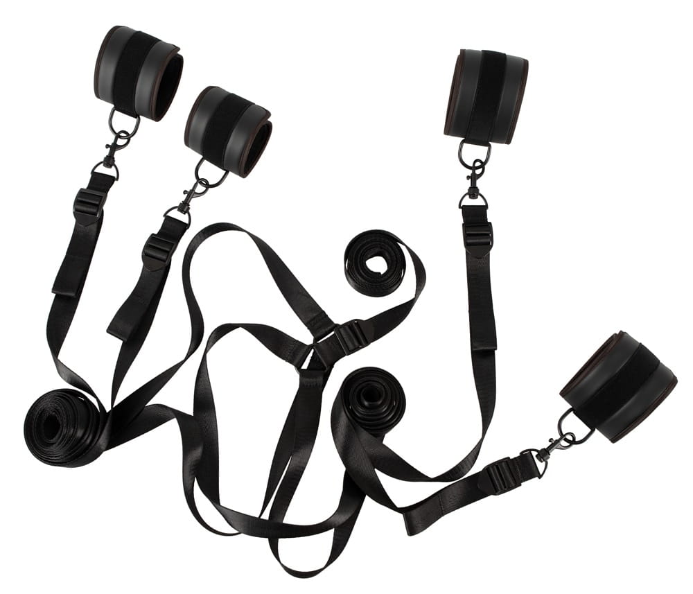 Every bed can be turned into a professional bondage playground with this bed restraint set. The cross that is made up of adjustable, tear-proof straps fit underneath any mattress. The handcuffs and ankle cuffs can be attached to the straps because there is a snap hook at the end of each strap. The comfortable handcuffs and ankle cuffs are in a characteristic leather look (but everything is completely vegan!). The handcuffs and ankle cuffs have hook and loop fasteners which means that they are suitable for HIM and HER.