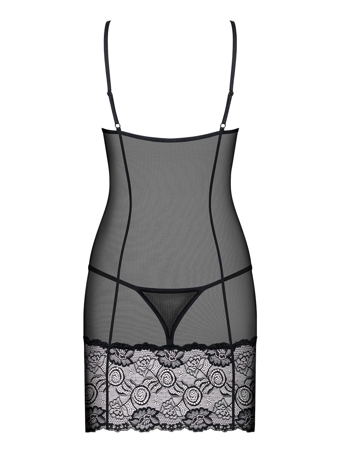 - w komplecie stringi uszyte z prześwitującego materiału