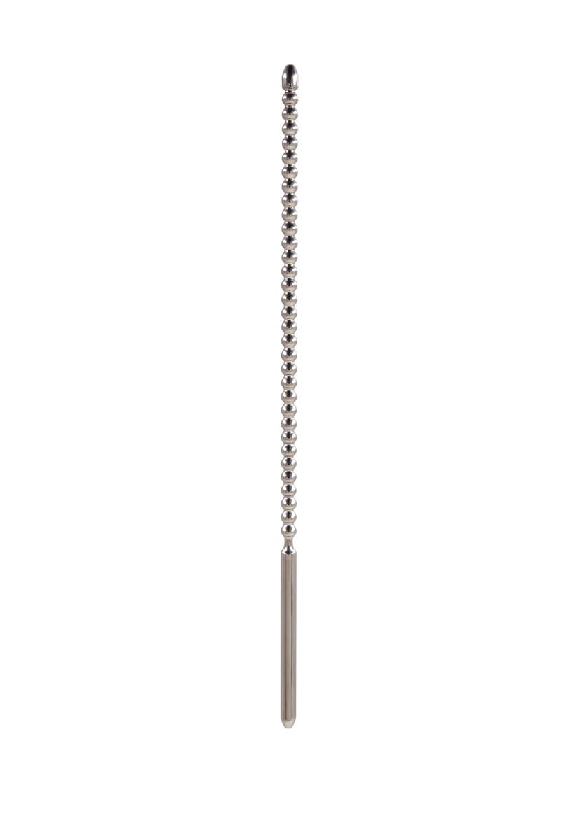 Dilator ze stymulującymi koralikami, zaokrągloną końcówką i gładkim uchwytem oraz końcówką. Bezszwowy. Całkowita długość ok. 24 cm. Długość wkładki 17,5 cm. ø 6 mm. Materiał: Stal nierdzewna.