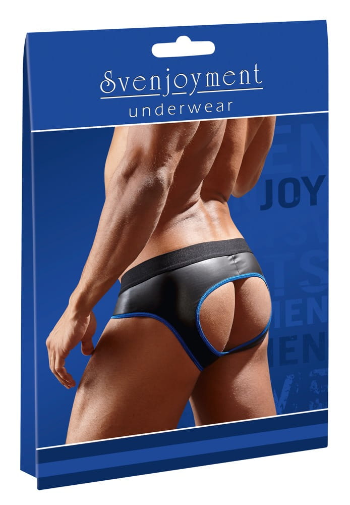 Slip into this shiny matte, open back jock in a neoprene rubber look and enjoy your partner´s admiring looks. With a front zip. Black, blue. 60% polyurethane, 36% polyester, 4% spandex.