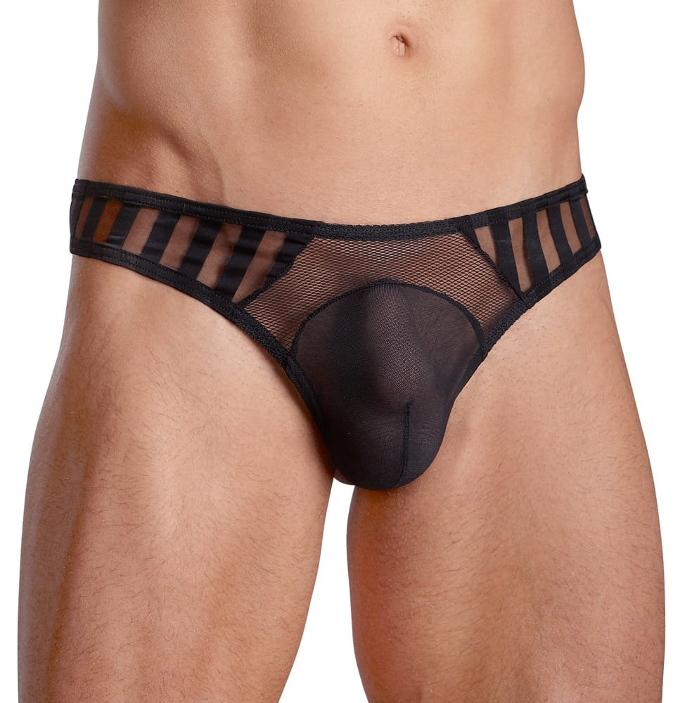 This sexy string lets you show what you have to offer. The trendy stripe design and the two types of net allows cheeky glimpses. With a narrow waistband. Black. 90% polyamide, 10% spandex.