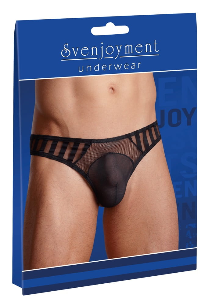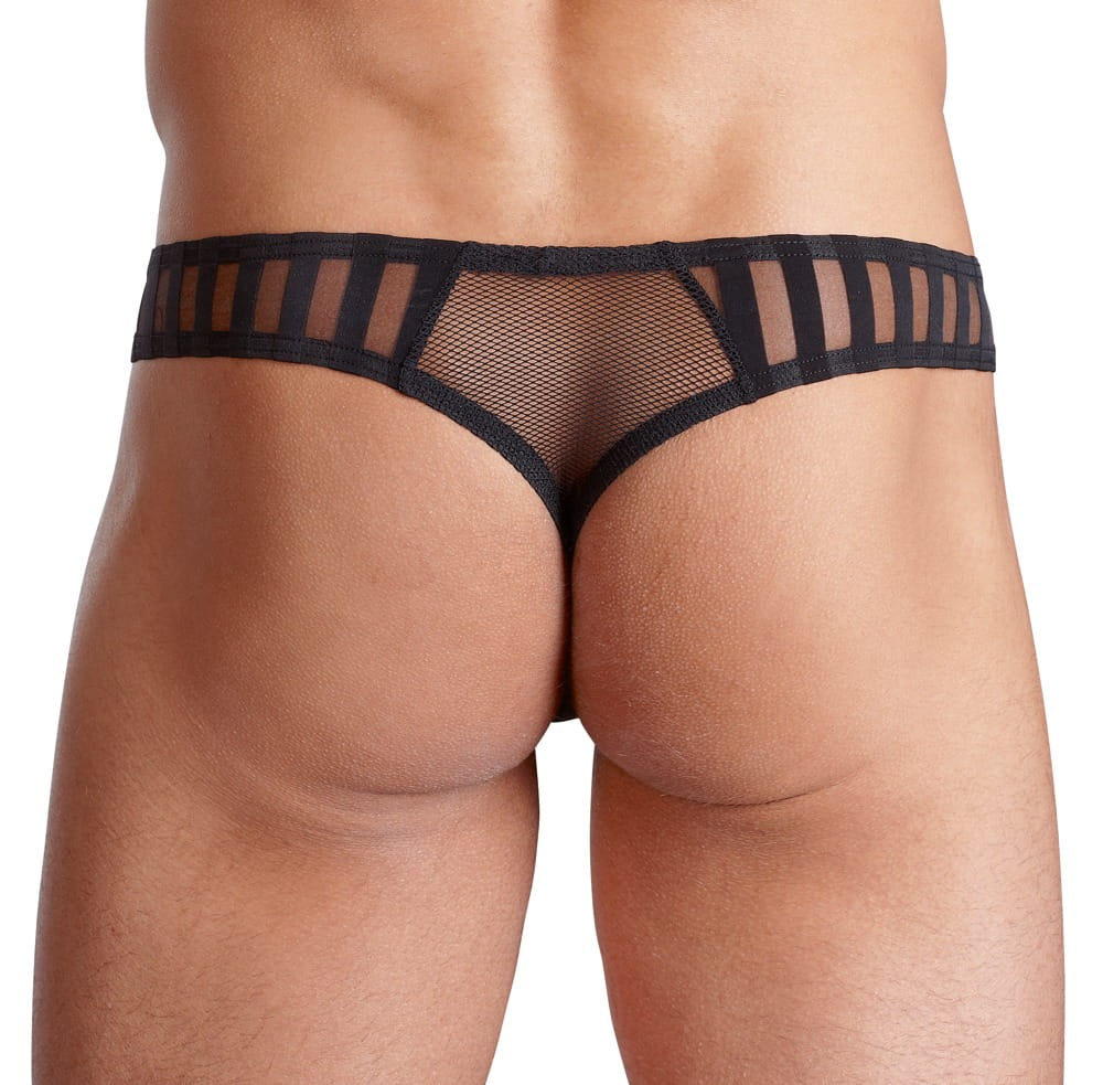 This sexy string lets you show what you have to offer. The trendy stripe design and the two types of net allows cheeky glimpses. With a narrow waistband. Black. 90% polyamide, 10% spandex.