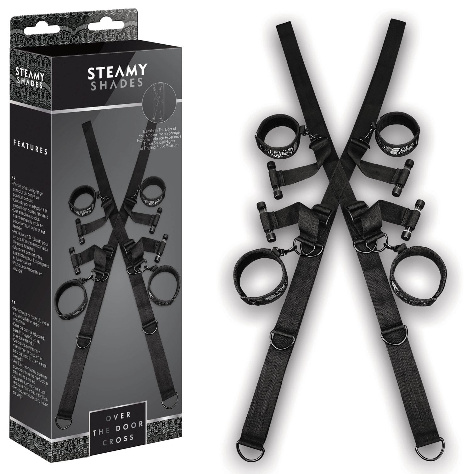 Idealny do zabezpieczenia całego ciała, stojący, drzwi Cross odpowiedni do większości standardowych drzwi, solidne sztangi utrzymują krzyż na miejscu nad każdymi zamkniętymi drzwiami, solidne D-ringi do idealnego pozycjonowania na różnych wysokościach, wygodne, regulowane mankiety na nadgarstki i kostki, podróże przyjazne paski (100% polipropylen); Mankiety (100% poliester); D-ringi (100% bezniklowe żelazo); regulatory (100% plastik); Haczyki (100% Akryl)