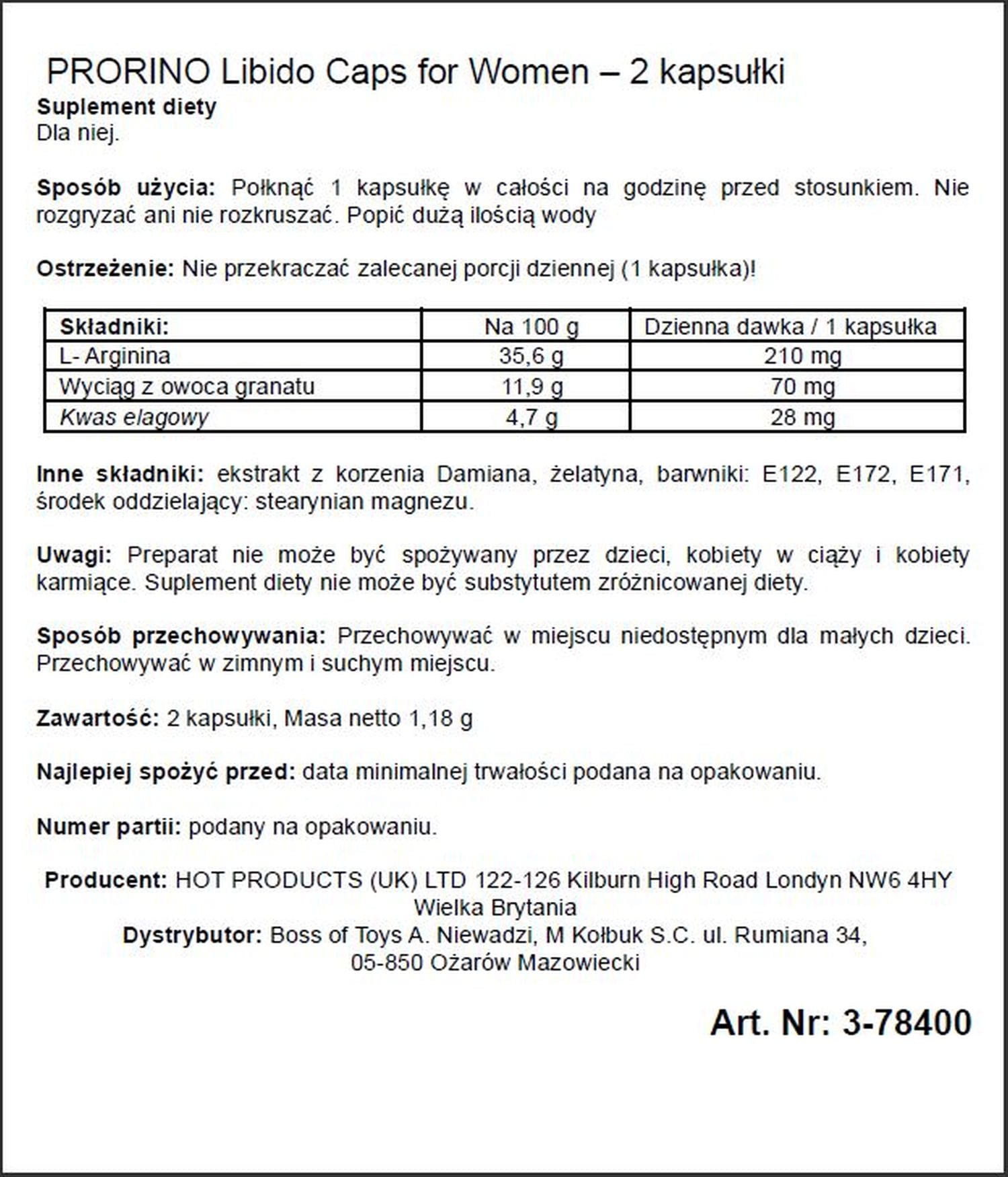 Supl.diety-PRORINO Women- 2pcs black line Libido Caps