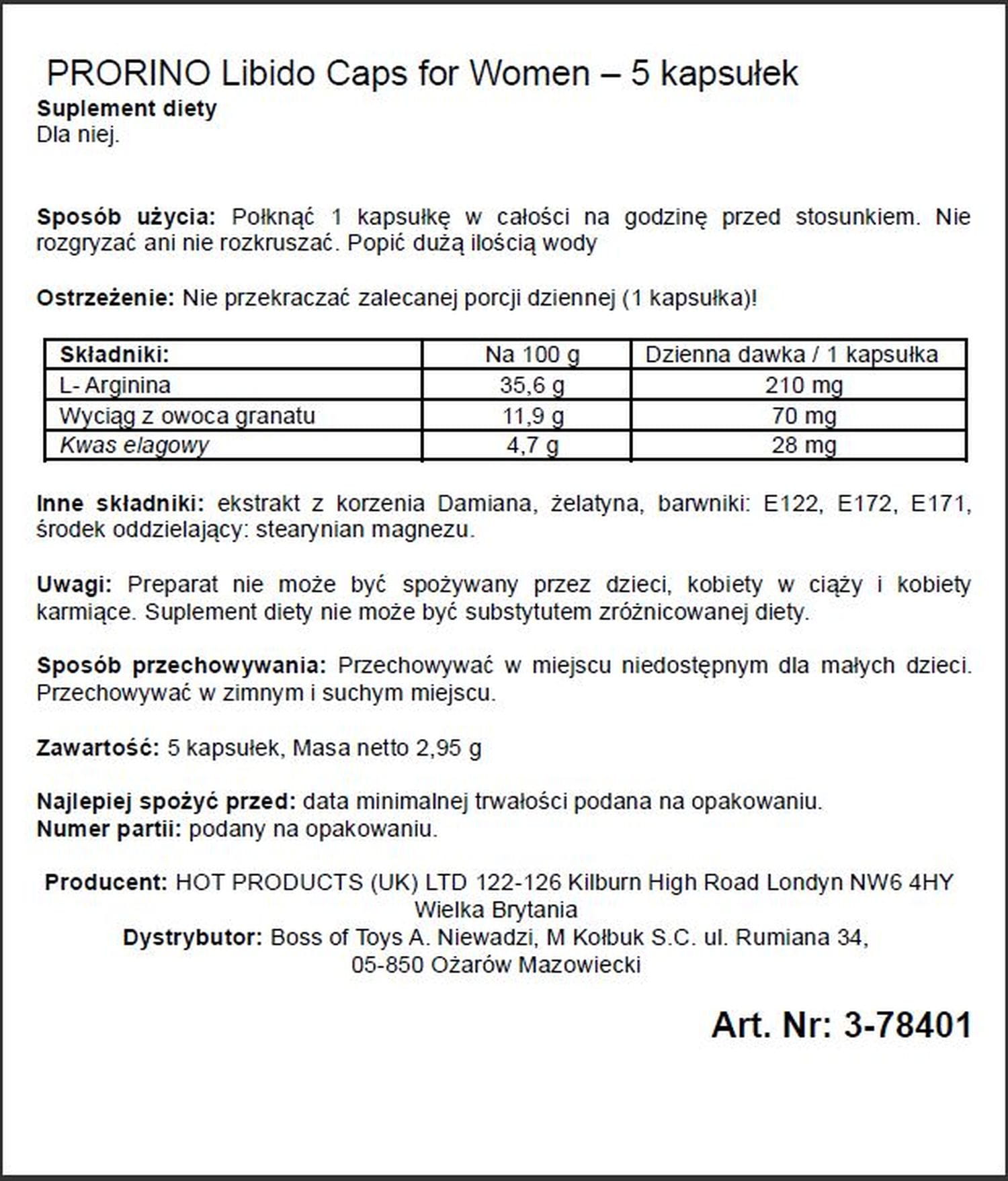 Supl.diety-PRORINO Women- 5pcs black line Libido Caps