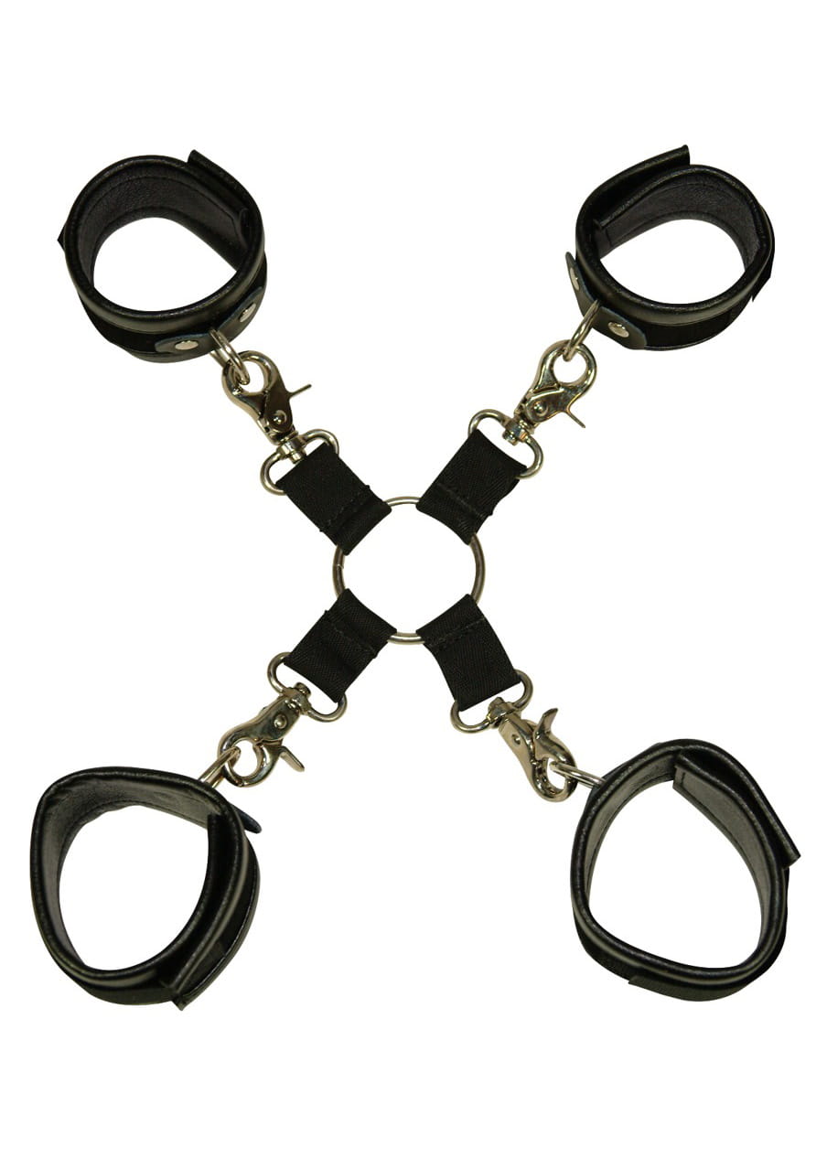 mankietów na nadgarstki połączone krzyżowym zapięciem z mankietami na kostki.